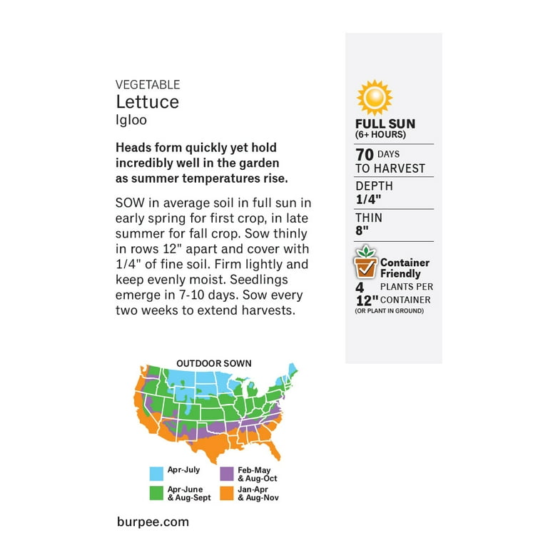 Burpee Igloo Lettuce Vegetable Seed 1 Pack Walmart Com